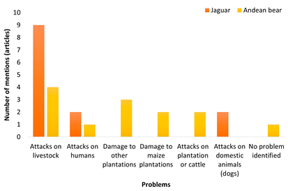 Figure 3: Problems caused by the jaguar and the Andean bear identified in the selected articles.