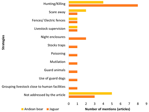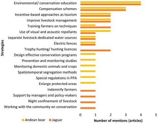Figure 5: Strategies proposed by researchers to address the HWC related to jaguars and Andean bears in Latin America.