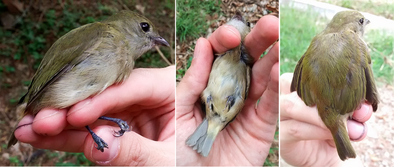3) Periferia de la zona urbana de Chaparral a 942 m s. n. m., 4 km al Oeste del casco urbano (03°43’57.5’’N, 75°31’28.5’’O); comprende un bosque ripario entre 70 m y 140 m de ancho, en una matriz de terreno plano con pasturas; se encuentra en una zona de transición entre bosque seco tropical a bosque húmedo premontano. En junio de 2018 se recorrió un transecto de 1500 m de longitud entre las 06:00 y 11:00 horas. Los especímenes recolectados están depositados en la Colección Zoológica de la Universidad del Tolima-Ornitología (CZUT-OR).